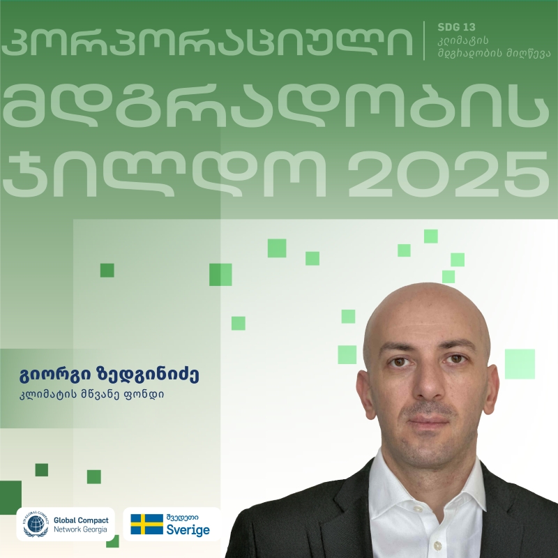 გიორგი ზედგინიძეს აქვს კლიმატის ცვლილებისა და გარემოსდაცვითი პოლიტიკის სფეროში ლიდერობის ორი ათწლეულზე მეტი ხნის გამოცდილება, დგას-რა დადებითი ცვლილებების სათავეში ეროვნული დონიდან გლობალურ არენაზე. როგორც საქართველოს გარემოს დაცვისა და ბუნებრივი რესურსების მინისტრის ყოფილმა მოადგილემ, შემდეგ კი მინისტრმა, მან გადამწყვეტი როლი ითამაშა ქვეყანაში მდგრადი განვითარების პოლიტიკის ჩამოყალიბებასა და წინსვლაში. სხვა მრავალ ინიციატივასთან ერთად, ის საქართველოს სახელით ხელმძღვანელობდა ყველა ორმხრივ ურთიერთობას გარემოს დაცვისა და კლიმატის ცვლილების სფეროში და იყო ქვეყნის წამყვანი მომლაპარაკებელი ამ საკითხებზე ევროკავშირთან ასოცირების ხელშეკრულებაში. დღეს ის მუშაობს კლიმატის მწვანე ფონდში ცოდნის მართვის ხელმძღვანელად, ორგანიზაციაში რამდენიმე წამყვანი თანამდებობის დაკავების შემდეგ. გიორგი ფლობს ჰარვარდისა და ოქსფორდის უნივერსიტეტების მაგისტრის ხარისხს.