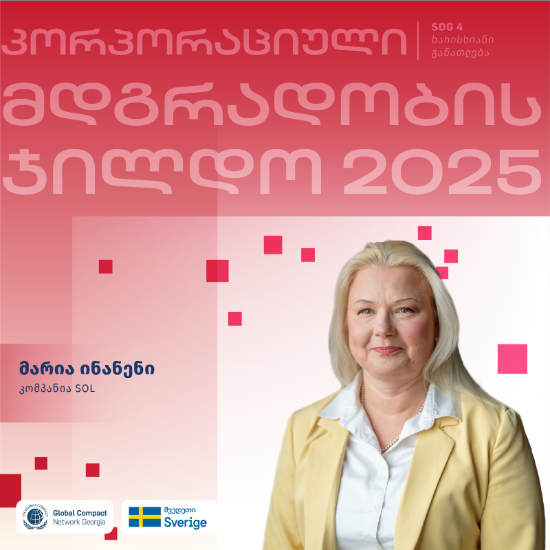 მარია ინანენი ფინური კომპანია SOL-ის მდგრადი განვითარებისა და კომუნიკაციების დირექტორია, მდგრადი განვითარების სფეროში ფართო გამოცდილებით. წარსულში მარია მუშაობდა ფინეთის პრემიერ-მინისტრის ადმინისტრაციაში, გაეროს გლობალური შეთანხმების ფინეთის ქსელის აღმასრულებელ დირექტორად და სხვა ორგანიზაციებში.