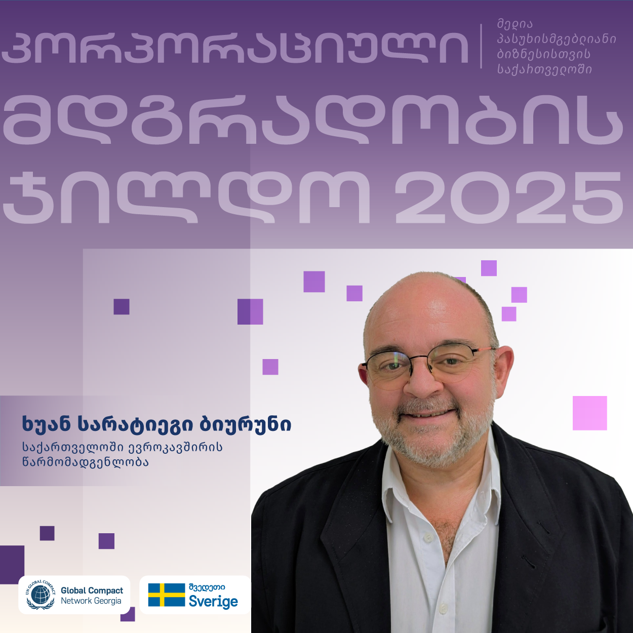ხუან სარატიეგი ბიურუნი არის გამოცდილი ევროპელი დიპლომატი, რომელსაც აქვს 25 წელზე მეტი საერთაშორისო გამოცდილება პოლიტიკურ საკითხებში, უსაფრთხოებაში, ადამიანის უფლებებსა და განვითარების თანამშრომლობაში. ის ამჟამად მუშაობს ოფიცრად პოლიტიკურ საკითხებში საქართველოში ევროკავშირის წარმომადგენლობაში. ევროპის საგარეო ქმედებათა სამსახურში და ევროკომისიაში კარიერის განმავლობაში, იგი მუშაობდა ლათინურ ამერიკაში, ჩრდილოეთ აფრიკაში, სამხრეთ-აღმოსავლეთ აზიასა და დასავლეთ ბალკანეთში მაღალ თანამდებობებზე პოლიტიკური ანგარიშების მომზადების, პროექტების მართვის, და ევროკავშირის წევრ ქვეყნებთან კოორდინაციის მიმართულებით.